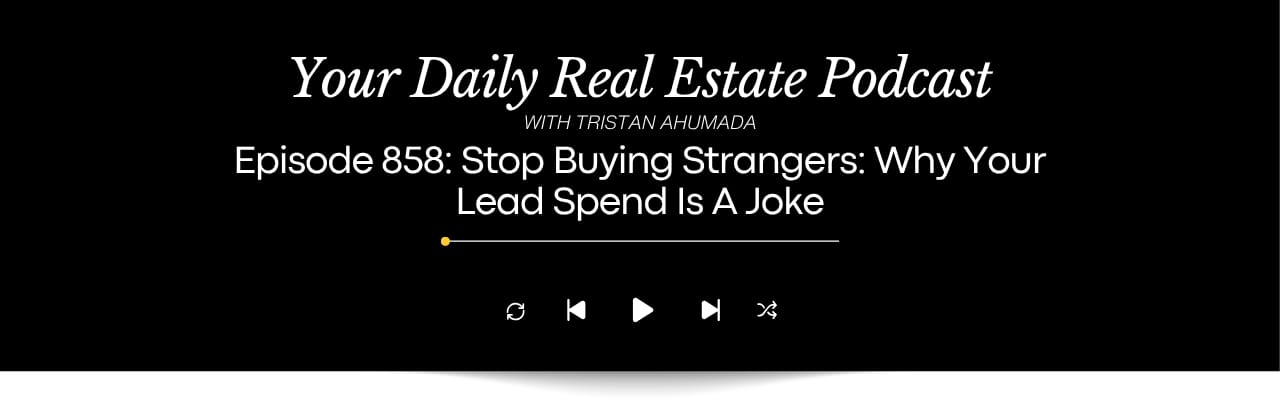 In Episode 858, Tristan breaks down a hard truth most agents need to hear. Your sphere matters more than the strangers you keep paying for. After spending millions on internet leads over the years, he has seen exactly what works and what drains your energy, your budget, and your business. Listen Now ▼